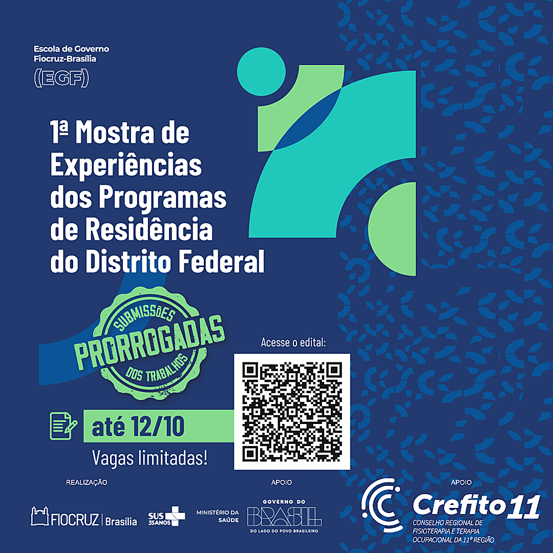 A 1ª Mostra dos Programas de Residência: Caminhos para Fortalecer a Formação em Serviço no SUS é um evento organizado pela Escola de Governo Fiocruz Brasília. Seu principal objetivo é avaliar, selecionar, divulgar e certificar pesquisas e relatos de experiências práticas desenvolvidos por residentes de diversas áreas da saúde.