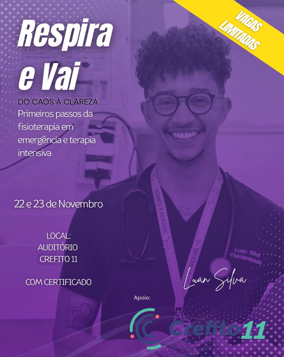 O curso "Respira e Vai – Do Caos à Clareza" chega à sua 2ª turma, com um conteúdo prático e direto para quem quer ingressar na fisioterapia hospitalar com segurança e confiança.