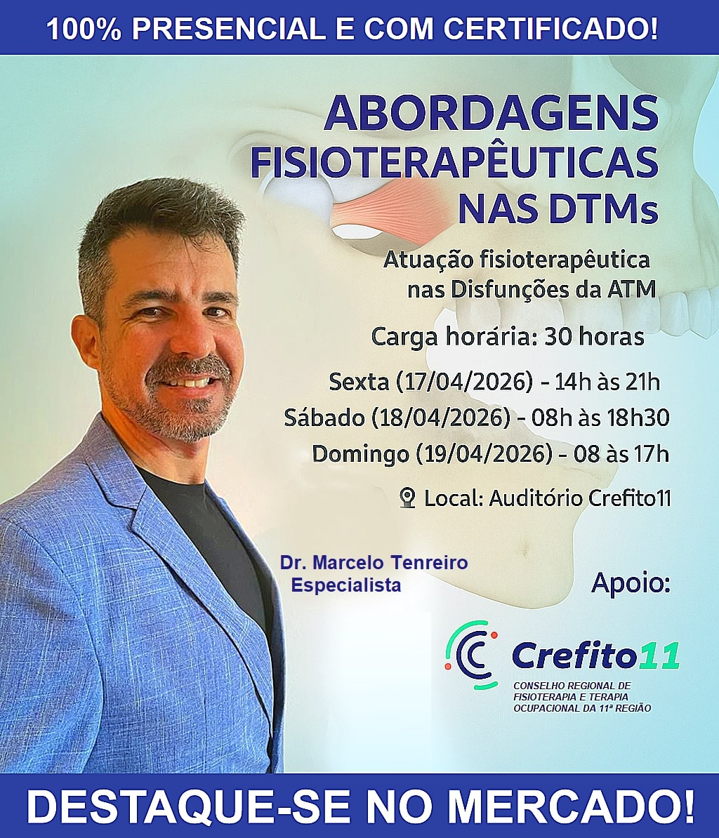 O curso “Abordagens Fisioterapêuticas nas Disfunções da ATM (articulação temporomandibular)” oferece aos profissionais de Fisioterapia uma imersão prática e teórica sobre diagnóstico, tratamento e manejo das disfunções temporomandibulares. Ministrado pelo Prof. Dr. Marcelo Tenreiro, o conteúdo aborda desde os aspectos anatômicos e funcionais da articulação até estratégias terapêuticas baseadas em evidências, com foco na atuação clínica e interdisciplinar do fisioterapeuta.